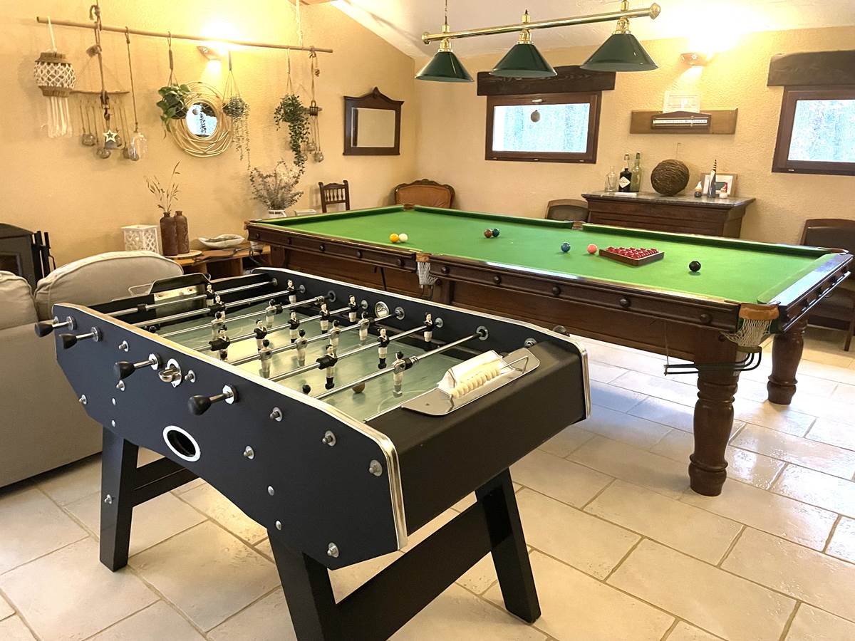 - A spacious 145 m² reception room : Perfect for convivial meals, it includes two large tables, two lounge areas with fireplace, a TV area with large screen, a pool table, table football and darts.